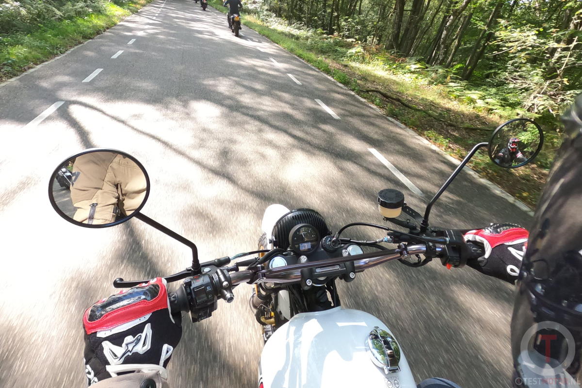 In de juiste stand start de dikke eencilinder makkelijk, met een zeer beschaafd geluid. Dit is nog de Euro4-versie, de volgende Euro5 zal nog stiller moeten worden, misschien zou je daarom snel deze versie nog willen. Op het lange zadel zit je prima, met een fijne houding rechtop die er wel wat braaf uitziet, maar je houdt het goed lang uit zo. Opvallend genoeg is er wel wat hoogteverschil tussen de verschillende exemplaren, net zoals ook de rijeigenschappen per gebruikte testmotor van hetzelfde model toch anders zijn. Op alle motoren zien we de klassieke toerenteller prima, maar is de snelheid en de neutraalstandindicator lastig af te lezen, zeker voor motorrijders die er in de jaren ’70 ook al waren.